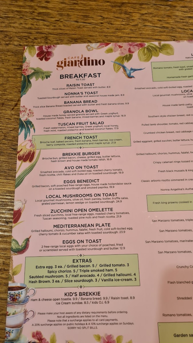 - Breakfast Offerings: Start your day with an exquisite blend of Australian favorites infused with Italian flair, perfect for lovers of both cuisines.